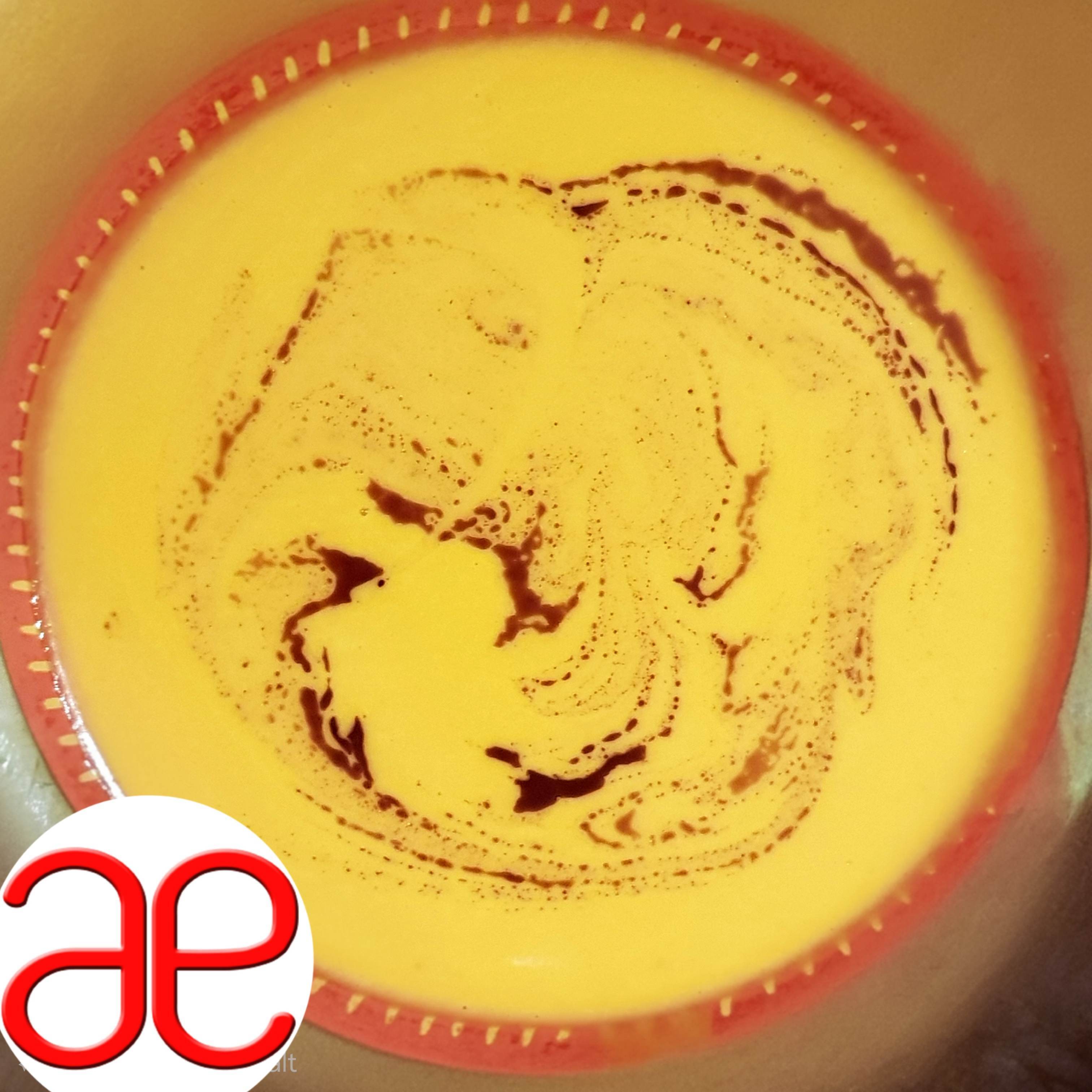 Dieses Werk entfaltet seine Wirkung aus einer radikalen Reduktion heraus. Auf den ersten Blick sehen wir eine kreisförmige Komposition in warmem Gelb, durchzogen von rotbraunen Spuren, die sich wie sedimentierte Bewegungen über die Fläche legen. Der dekorative Rand bildet einen bewusst gesetzten Rahmen, der Alltäglichkeit und Intimität evoziert – ein Objekt aus dem täglichen Leben wird hier zum Träger ästhetischer Bedeutung.