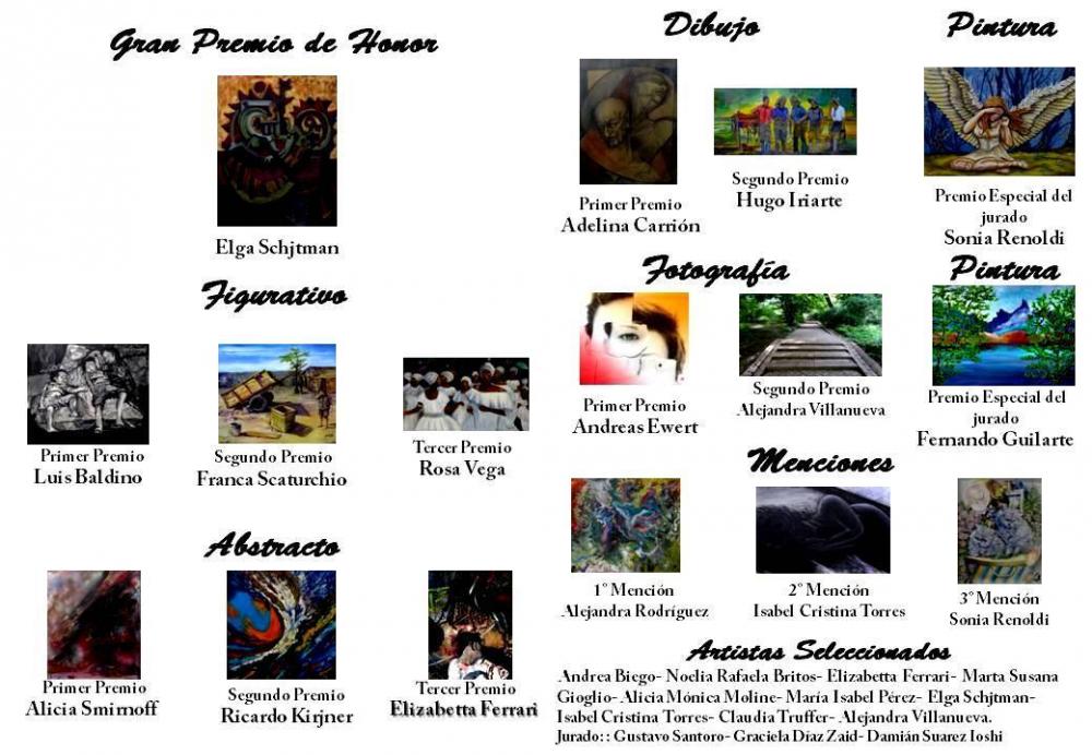 Premios: Gran Premio de Honor- Copa de metal y Participación con fotografías de 10 obras en nuestra pagina web www.gdgaleriadeabasto.com –Alojamiento por 1 año. Diploma de Honor